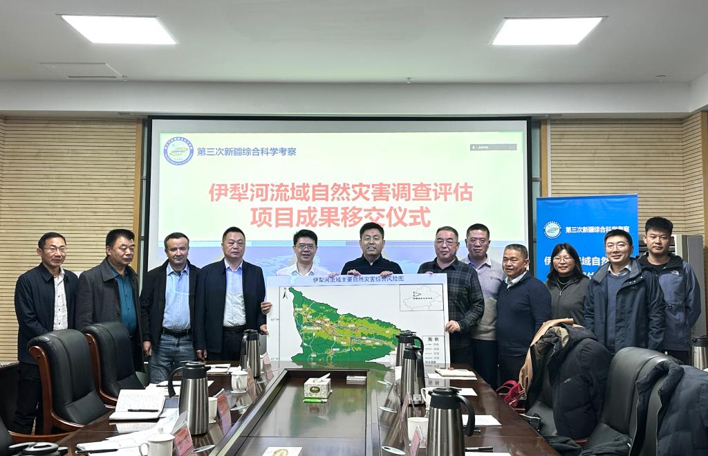 项目首席武建军教授介绍了项目研究进展及取得的成果,项目团队采用空天地一体化与灾害过程模拟协同的新方法,完成了对伊犁河流域多灾种自然灾害的系统调查与评估,构建了精细化的自然灾害调查数据集,评估了伊犁河流域主要灾害类型、多灾种及未来气候变化多情景风险,提出适应未来气候变化的灾害应对策略。本次移交的主要成果包括伊犁河流域多灾种、多要素、多尺度、长时序灾害风险数据集,高精度的单灾种及多灾种综合风险调查评估图集,以及相关报告和研究论文。
