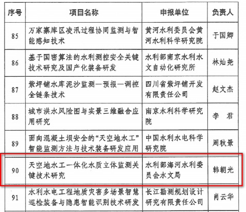该项目负责人为水利部海委水文局韩朝光主任,研究院曹永强教授、么嘉棋副研究员合作申报,项目预期形成天空地水工一体化立体监测装备体系和水质三维剖面自动监测平台,并生成“天空地水工”多模态数据智能融合与反演软件系统、水质立体化评估方法体系。